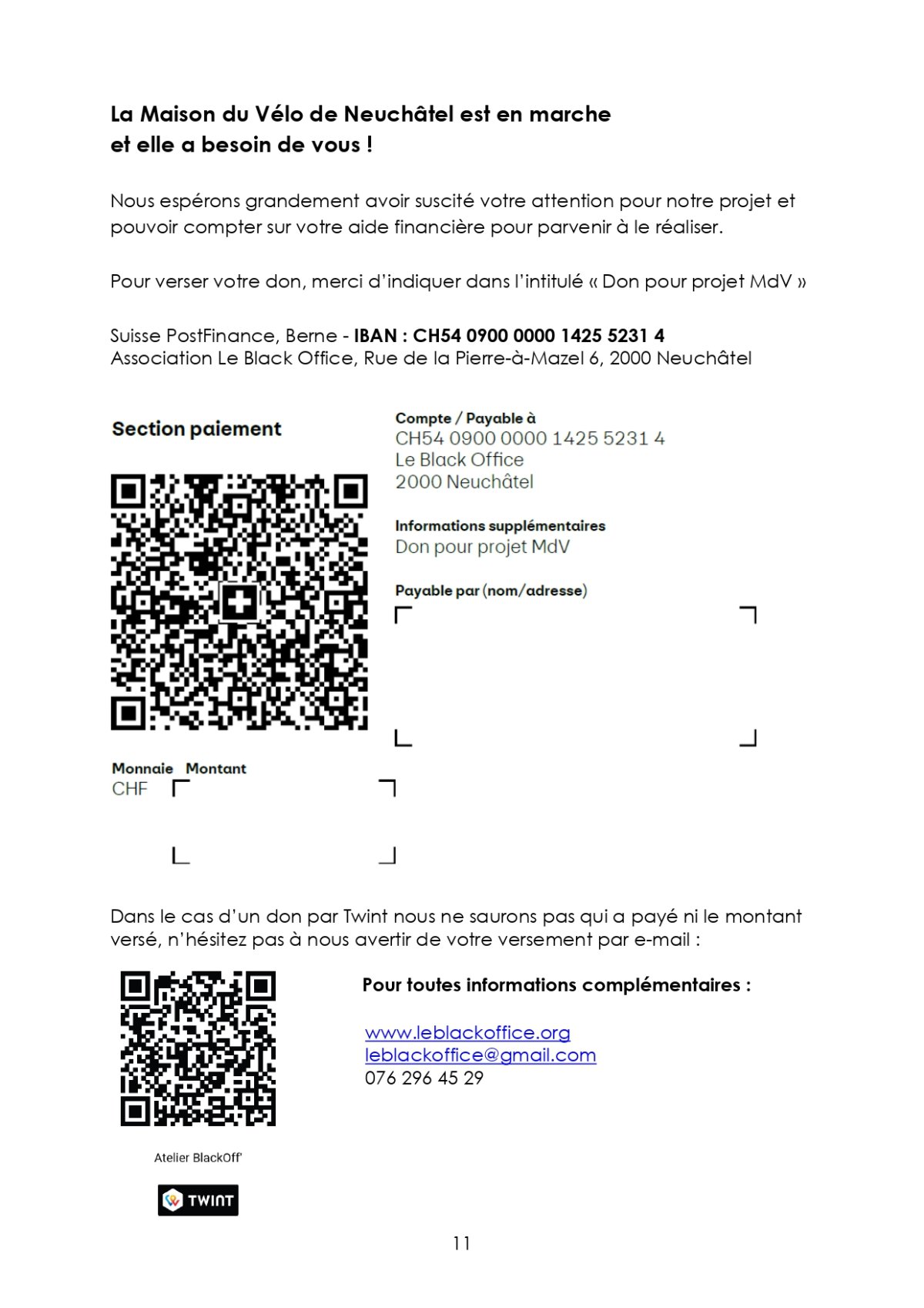 Dans le cadre de la rénovation actuelle de l'atelier du Black Office nous faisons une campagne d'appel aux dons afin de financer une partie des travaux.